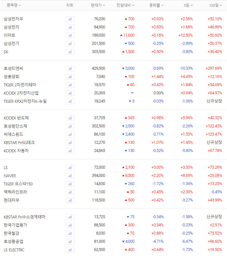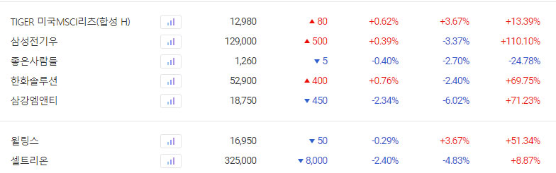 오늘 내 보유종목 전체 평균은 0.98% 올랐다. 시장 지수보다 성적이 좋은 셈이다.
