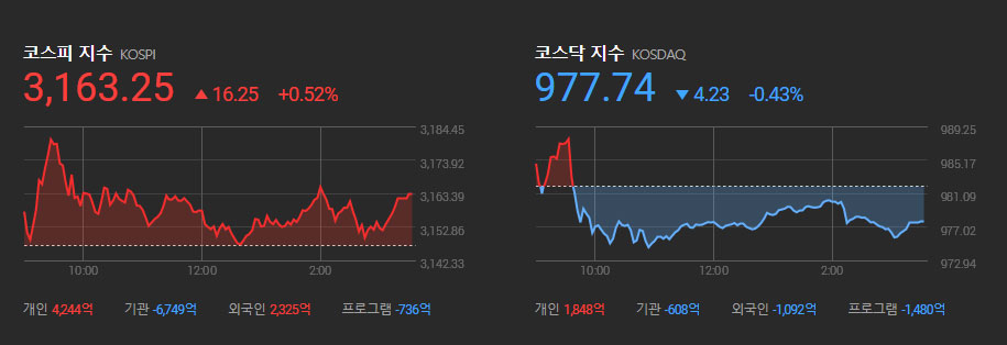 그래도 코스피에서 외국인이 샀고, 개인도 샀다. 기관만 팔았다. 코스닥에서는 기관과 외국인이 둘 다 팔았다. 그래서 코스닥은 0.43% 하락으로 마감했다.